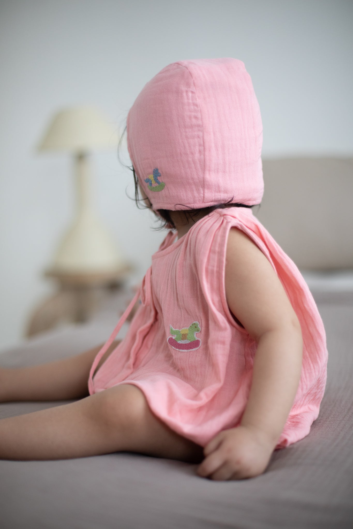 Finished with a subtle handcrafted motif, it’s perfect for warm days, quiet naps, and tender moments of play.