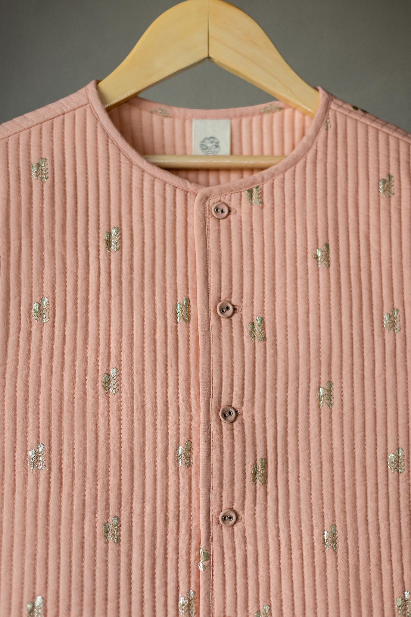 -Made to keep your child warm, Reversible, hand badla work on the outside & solid blush on the inside, Brooch placement on both the inside of the jacket, Gender neutral.
