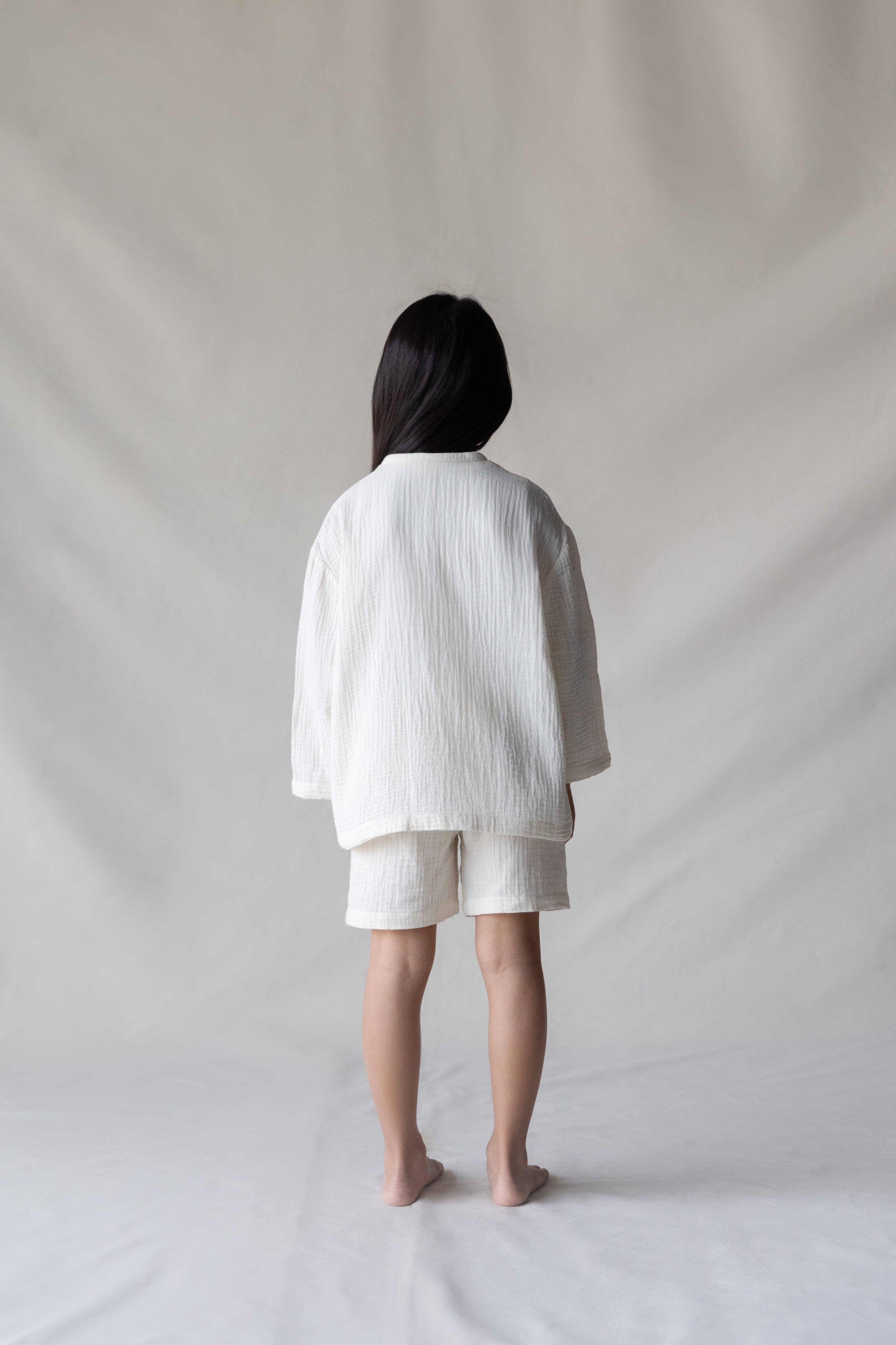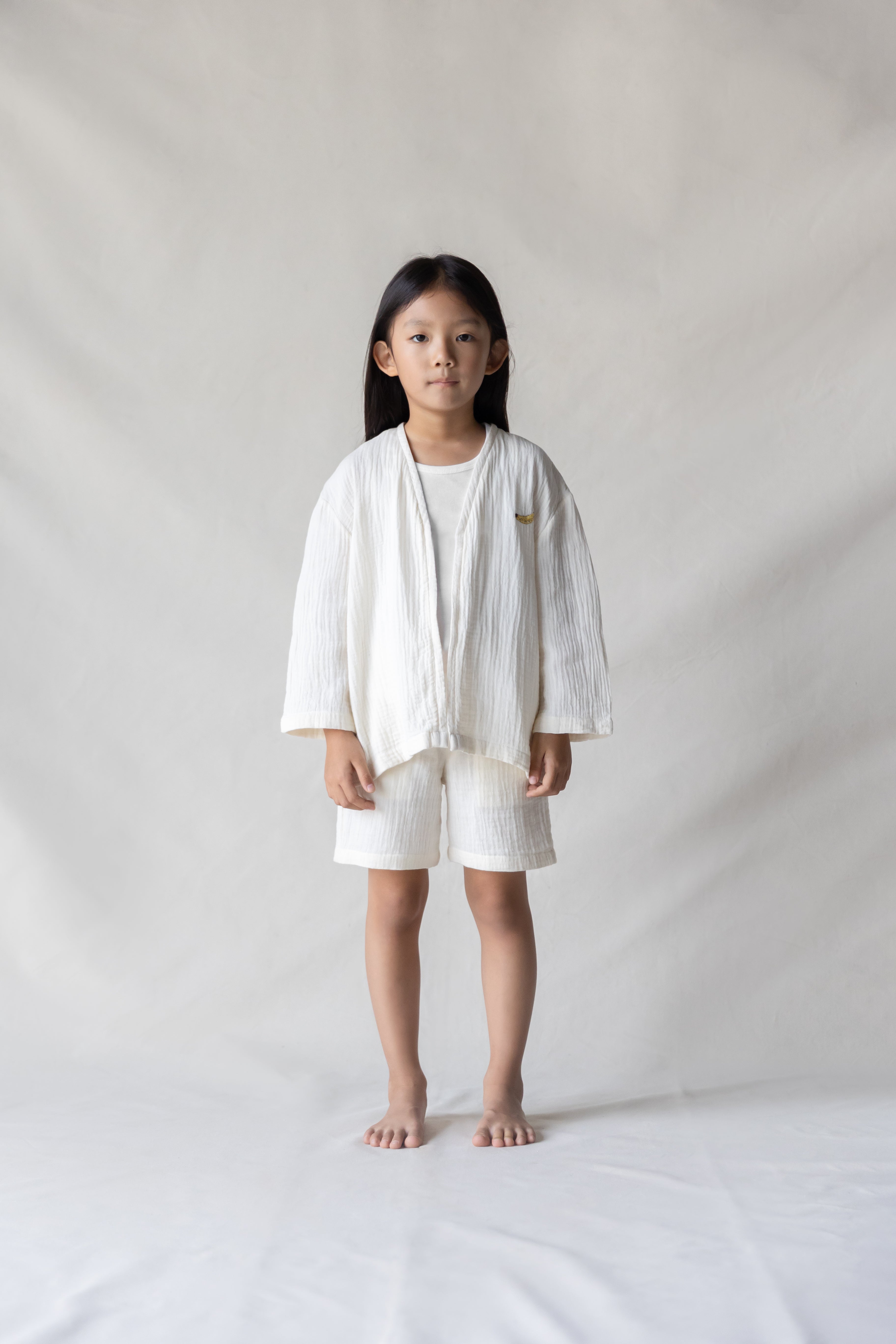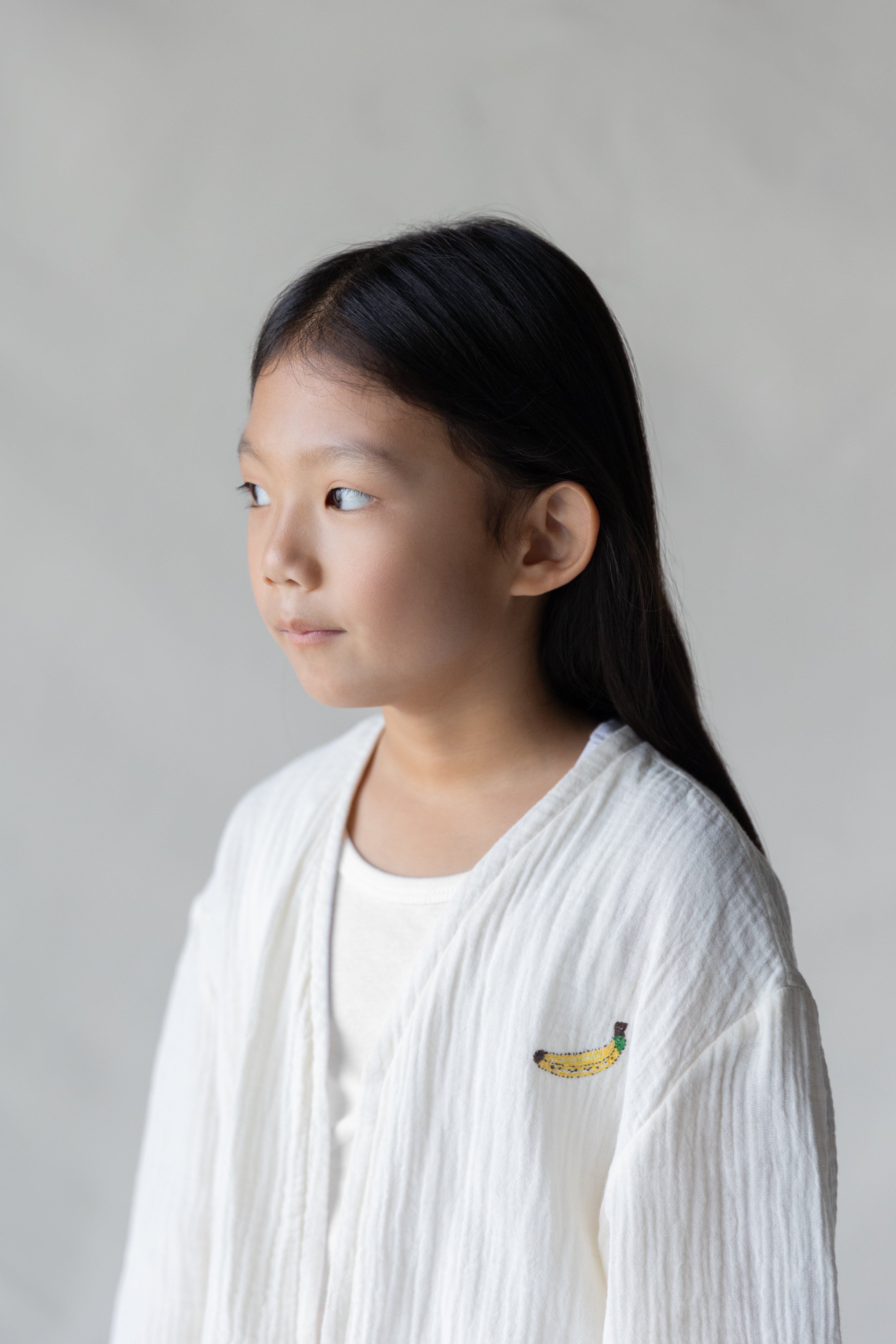Going Banana Ivory Kimono with full sleeves ensures a clean and timeless look that is both versatile and stylish. It can be styled with vest and denims or khaki pants/shorts. Made with 100% organic cotton. The motif is hand embroidered through the traditional Indian embroidery technique. Gender Neutral. Pre washed and pre shrunk.