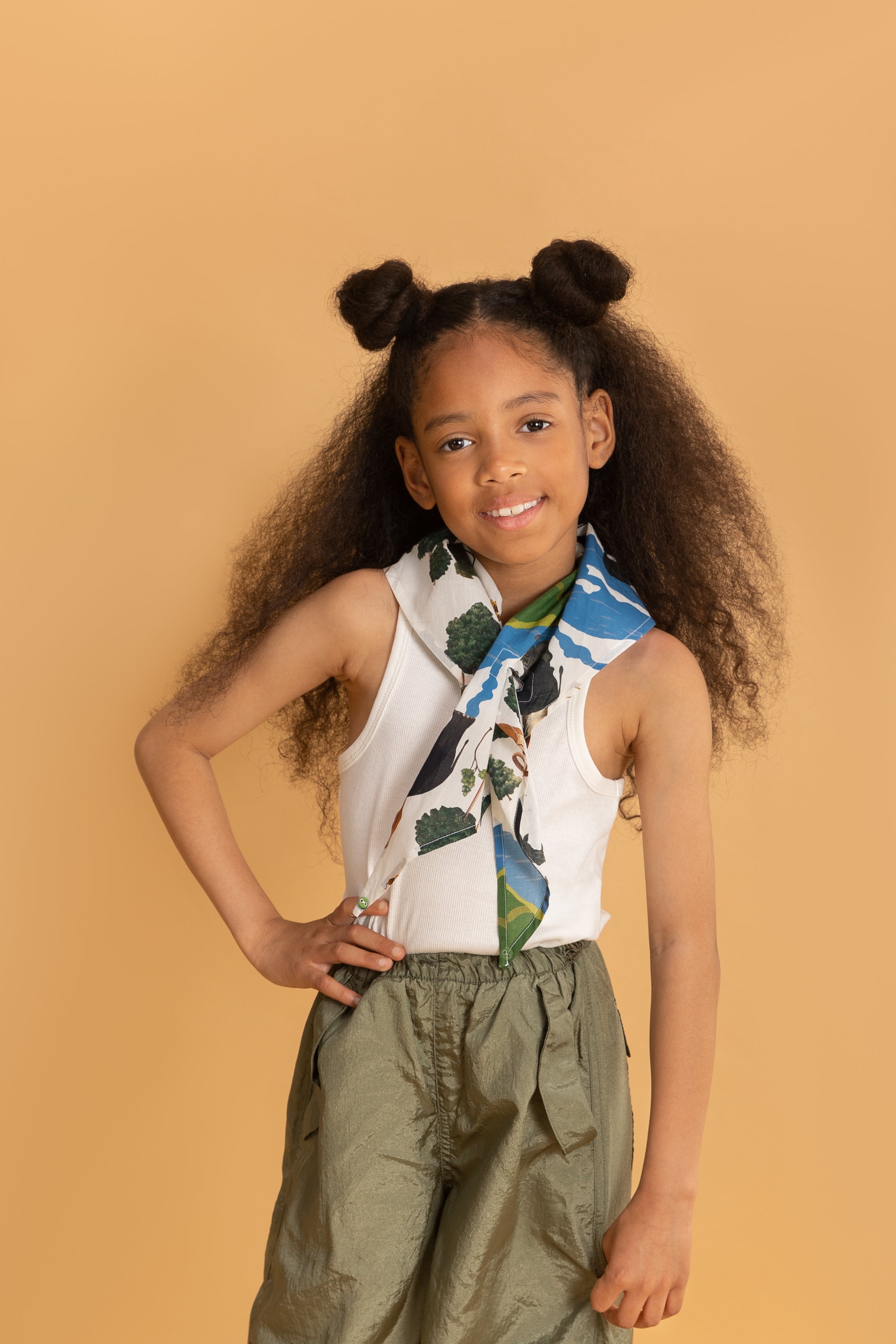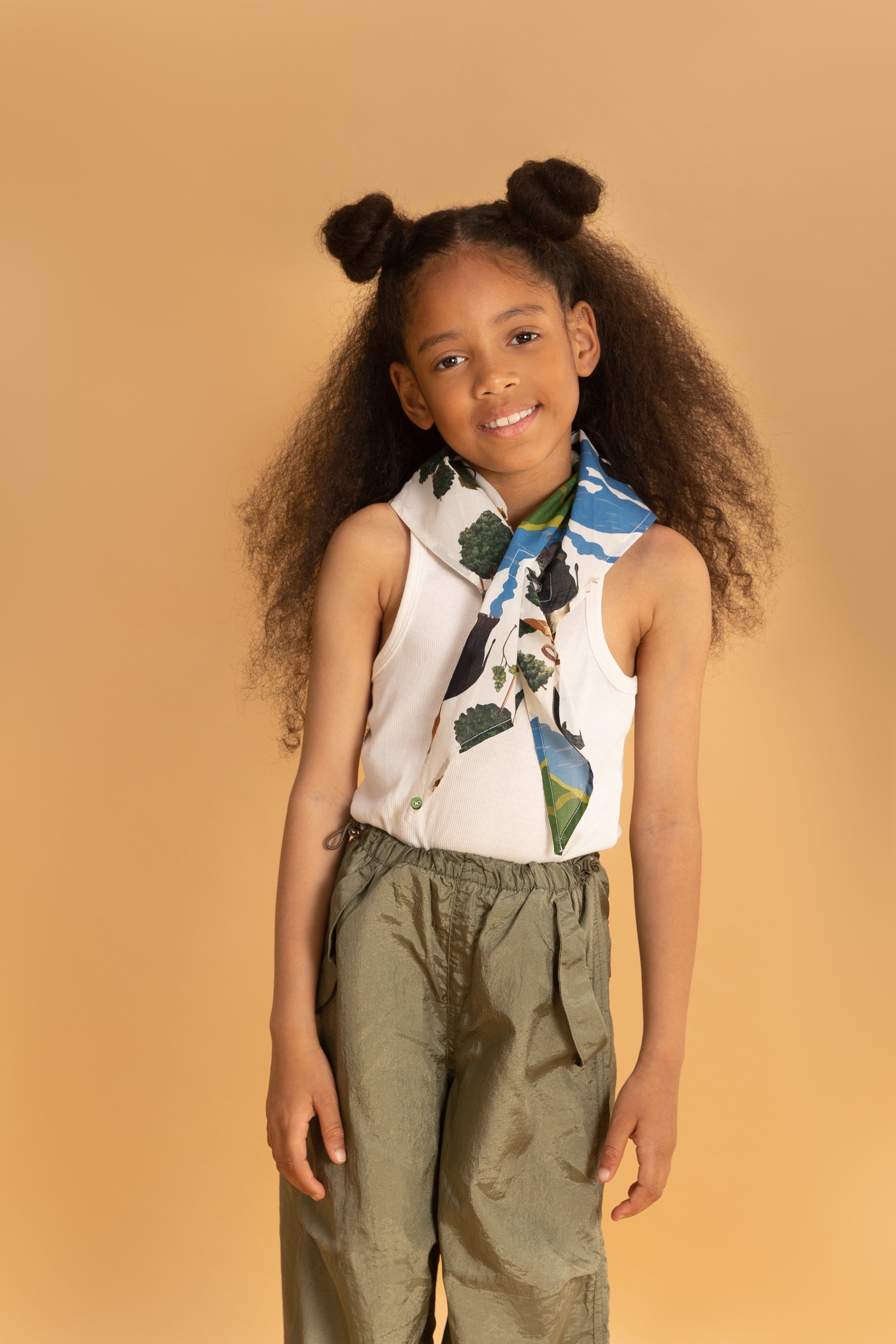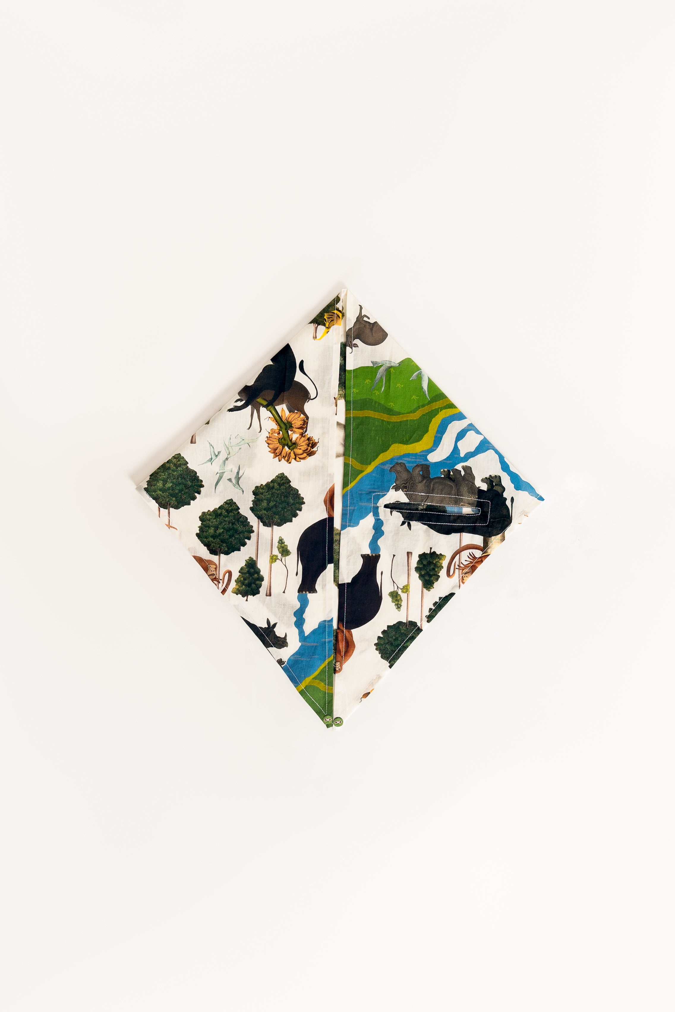 Ivory Kaziranga National Park print neckerchief has pointed ends with button details.