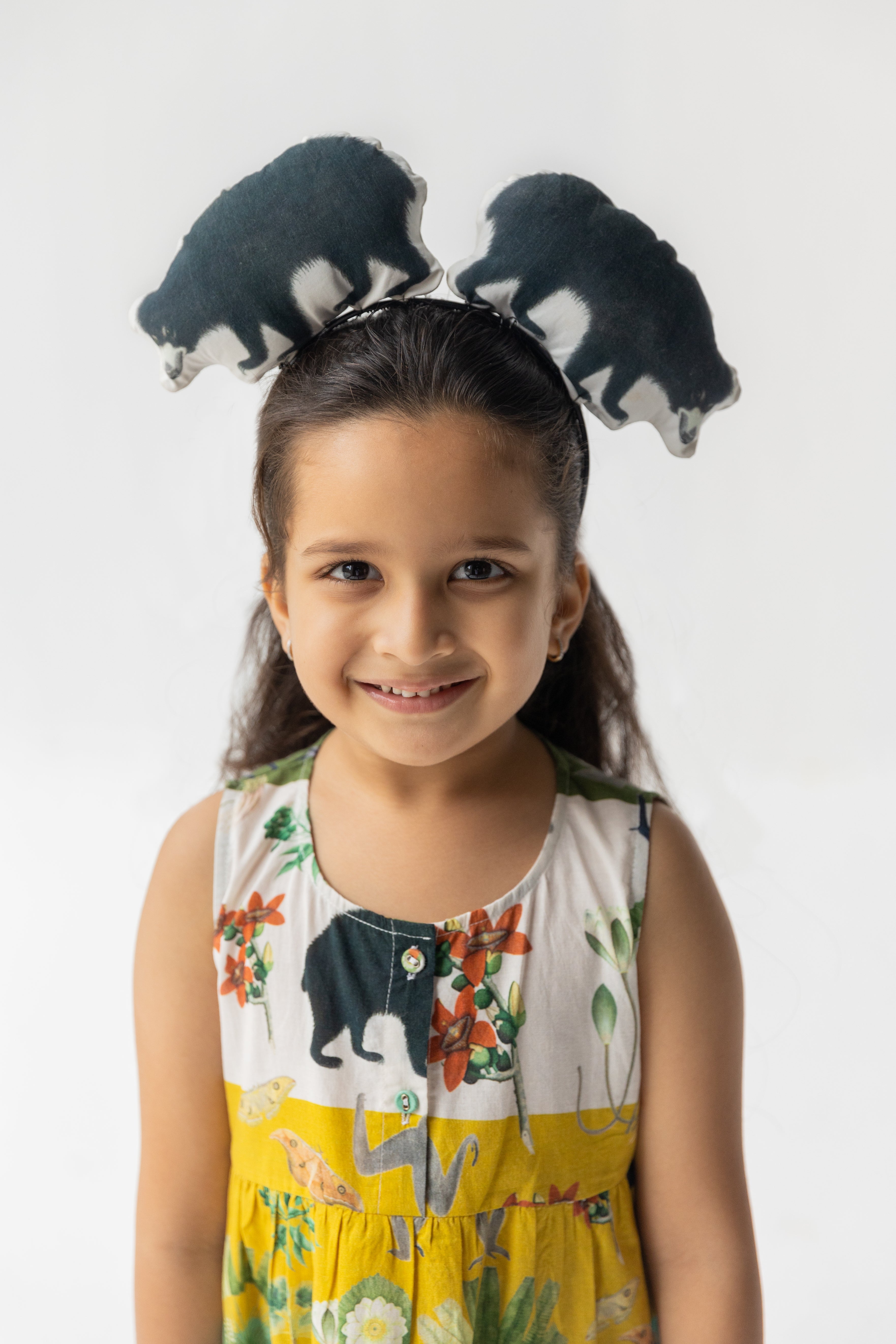 Multicolour chidiya ghar ki sair print 2-tier dress has a round neckline with a front placket and is sleeveless.