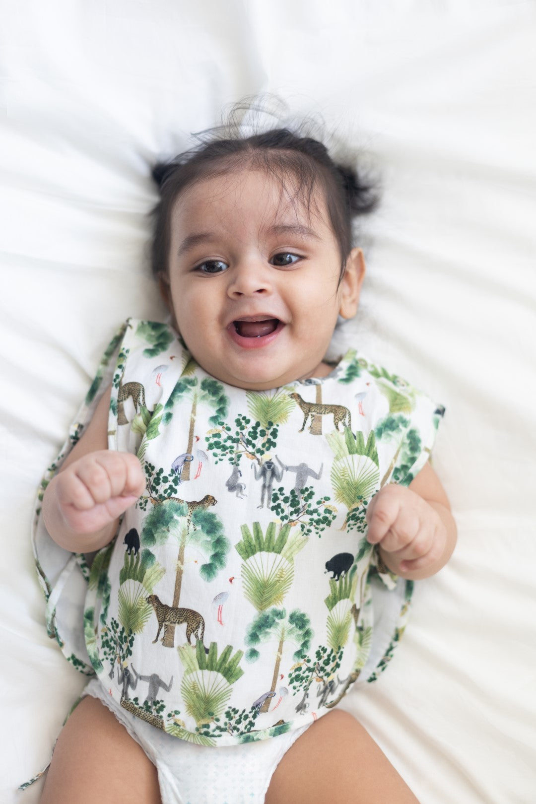Ivory sunderban print jhabla has shoulder button closure and is very comfortable and breathable silhouette with tie-up at both the sides.